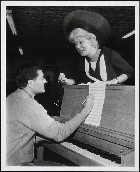 [Composer and lyricist Jerry Herman with Carol Channing.]