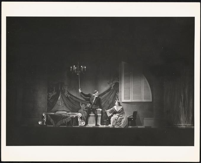 [Maurice Evans in the title role and Mady Christians as Gertrude in "Hamlet".]