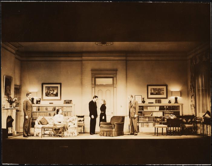 [Laurence Olivier as Julian, Leo G. Carroll as Trump, and James Dale as Mr. Dulcimer in "The Green Bay Tree".]