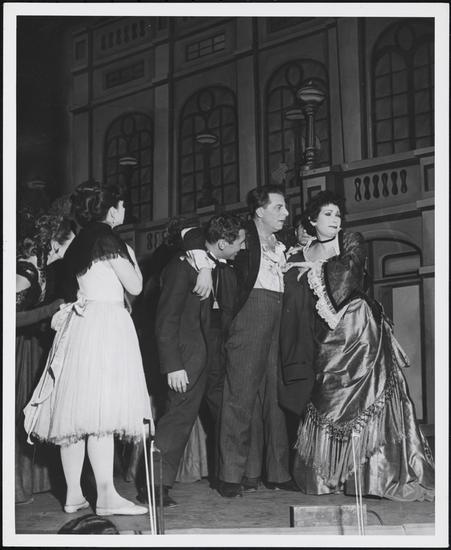 [Charles Goldner as Maestro Gallo and Brenda Lewis as Lotta Leslie in "The Girl in Pink Tights".]