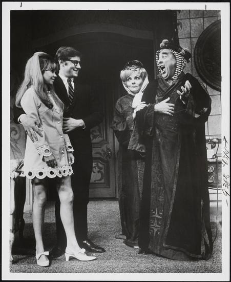 [Gary Krawford and Gloria Bleezgarde in "Don't Drink the Water".]