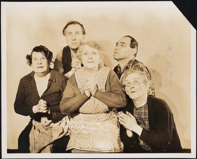 [Roy Fant as Uncle Smelique, Allan Tower as Mr. Bergen, Charles Thompson in an unknown role, and John Gerstad as Hank Gudger in "Dark of the Moon".]