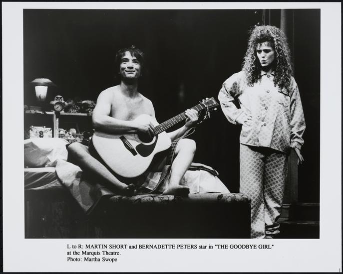 [Bernadette Peters as Paula and Martin Short as Elliot in "The Goodbye Girl".]