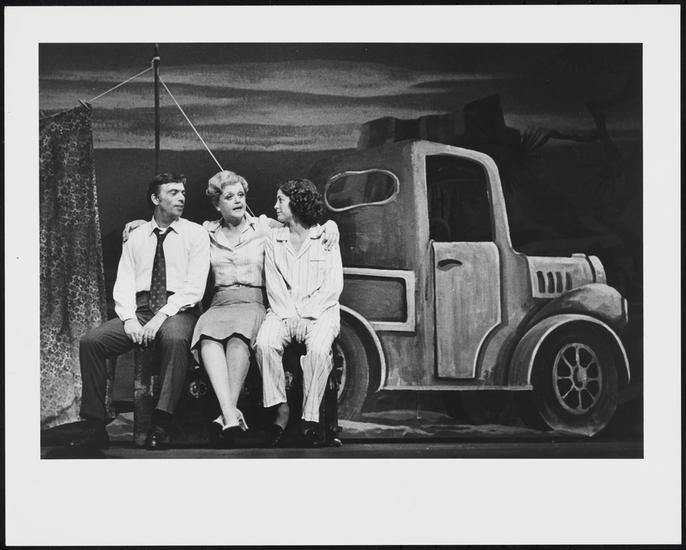 [Sandra Church as Louise, Ethel Merman as Rose, and Jack Klugman as Herbie in "Gypsy".]