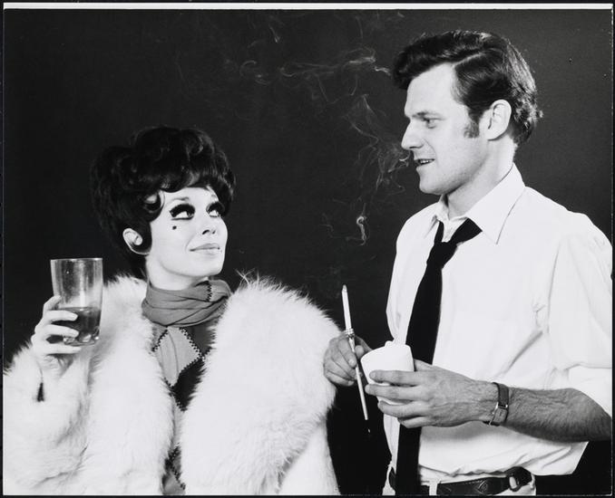 [Jill Haworth as Sally Bowles and Ken Kercheval as Clifford Bradshaw in "Cabaret".]