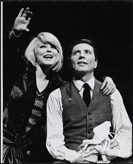 [Jill Haworth as Sally Bowles and Bert Convy as Clifford Bradshaw in "Cabaret".]