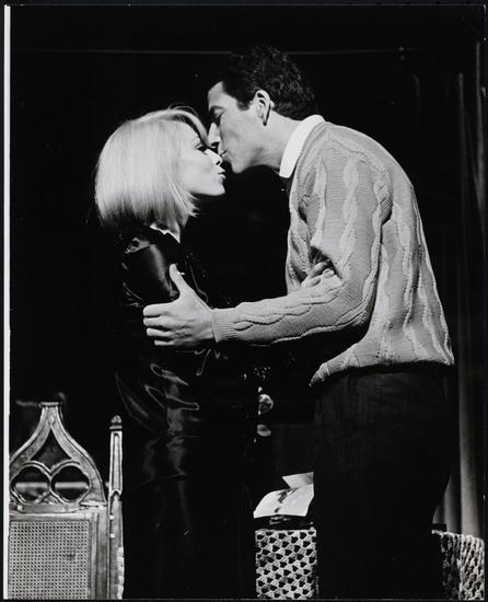 [Jill Haworth as Sally Bowles and Bert Convy as Clifford Bradshaw in "Cabaret".]