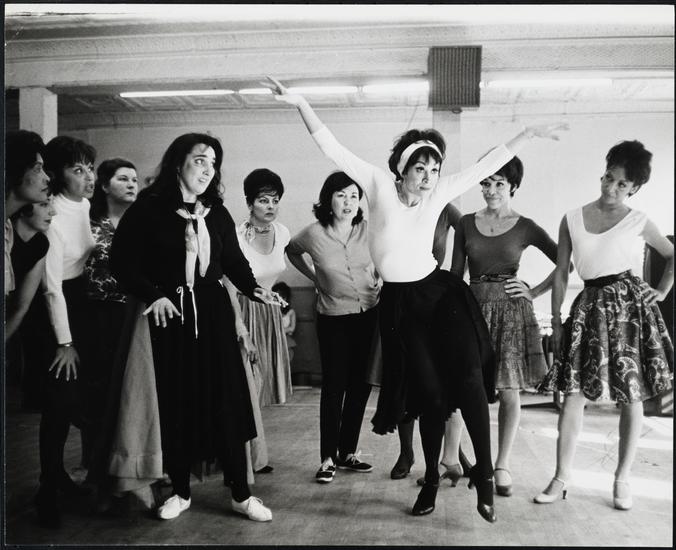 [Chita Rivera and Gus Trikonis during a dance rehearsal for "Bajour".]