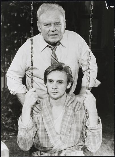 [Frank Converse as Harry and Carroll O'Connor as Jim in a rehearsal for "Brothers".]
