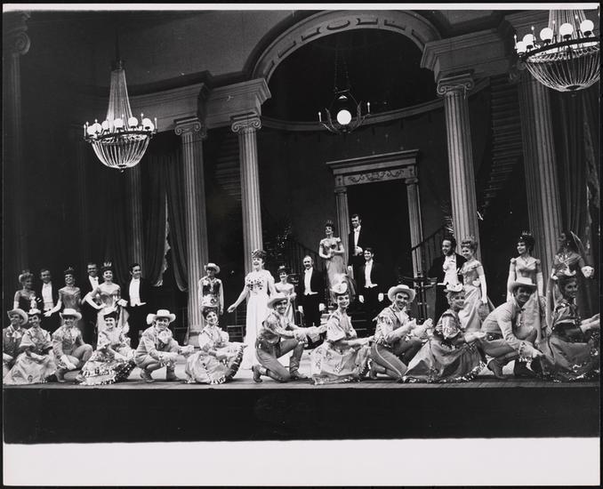 ["Annie Get Your Gun" and "High Button Shoes" theater stills.]
