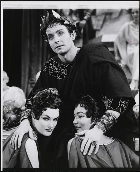 [Kenneth Haigh in the title role and Collen Dewhurst as Caesonia in "Caligula".]
