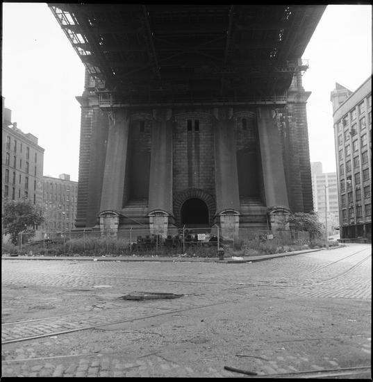 [Manhattan Bridge overpass and surrounding neighborhood.]