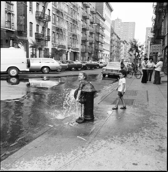 Children playing with open fire hydrant on E. 103rd St. by 5th Avenue