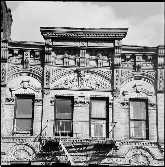 [254-260 Canal Street, detail of upper stories on Lafayette Street façade.]