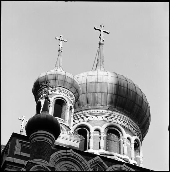 [Onion domes of St. Nicholas Russian Orthodox Cathedral, 15 East 97th Street.]