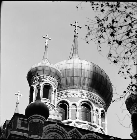[Onion domes of St. Nicholas Russian Orthodox Cathedral, 15 East 97th Street.]