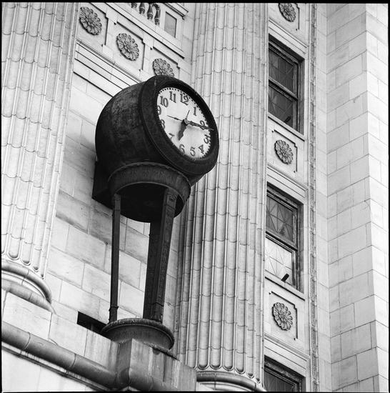 [Decorative owl sculpture on the façade of an unidentified building.]