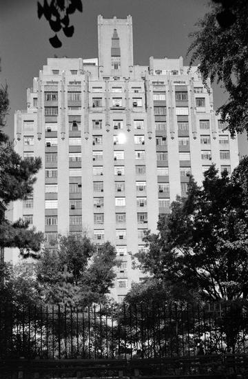 [View of the El Dorado, 300 Central Park West, from Central Park.]