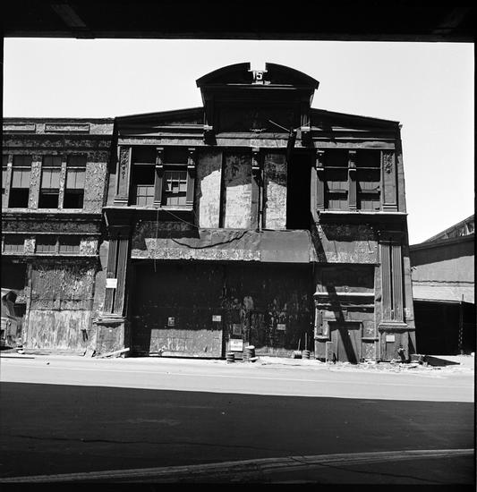 [Delapidated Hoboken Ferry building next to Pier 15 on the Hudson River waterfront.]