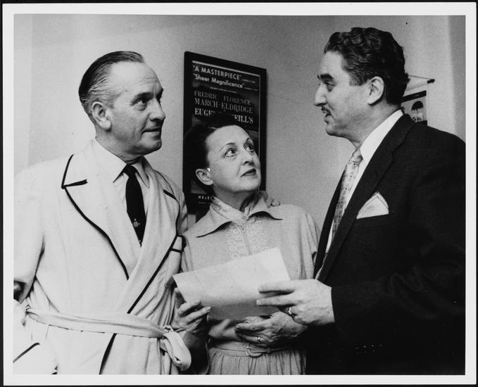 [Jason Robards, Jr. as James Tyrone, Jr., Fredric March as James Tyrone and Florence Eldridge as Mary Cavan Tyrone in "Long Day's Journey Into Night".]