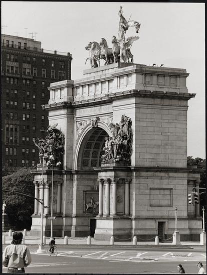 ["The Army: Genius of Patriotism Urging American Soldiers On To Victory" group on the south pedestal of the Soldiers' and Sailors' Memorial Arch.]