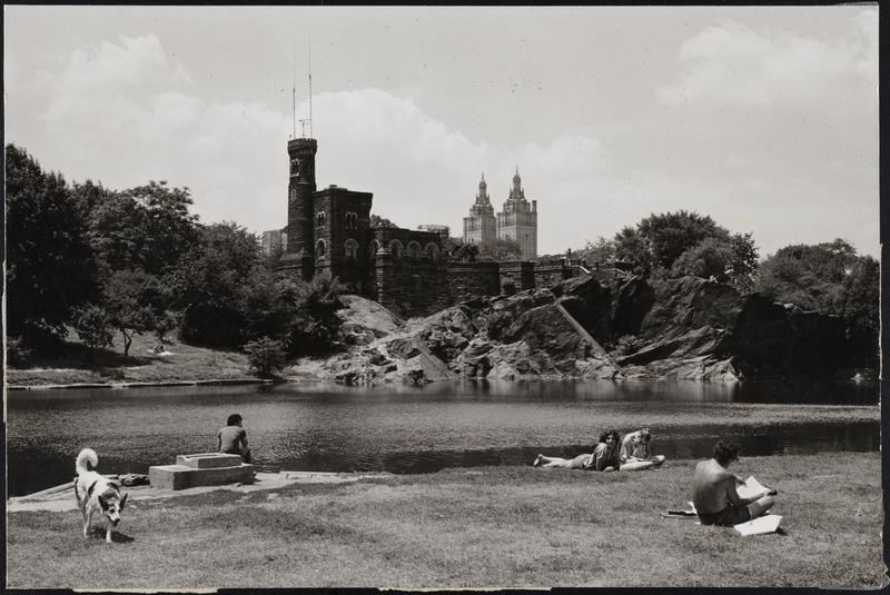 [Looking over Turtle Pond to Belvedere Castle and Vista Rock.]