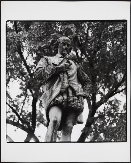 [Bronze statue of William Henry Seward facing the Flatiron Building.]