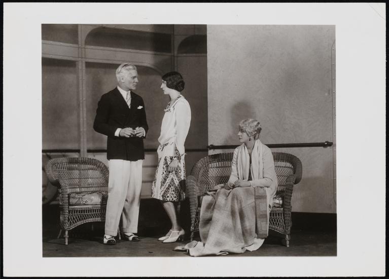 [Lynn Fontanne as Nina Leeds, John J. Burns as Gordon Evans and Glenn Anders as Edmund Darrell in "Strange Interlude".]