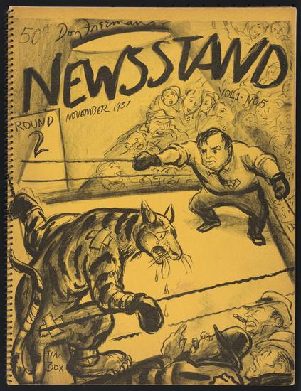 Seen at the City Hall - a personal complaint to the Mayor - he's never too busy [Don Freeman's Newsstand.]
