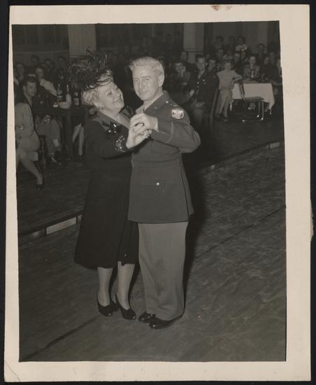 [Sophie Tucker dancing with an unidentified man on the street.]
