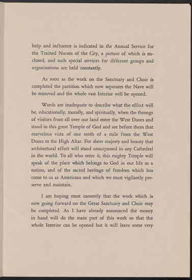 Report on the Progress of the Work for the Completion of the Great Sanctuary and Choir and the Opening of the Whole Interior of the Cathedral of Saint John the Divine