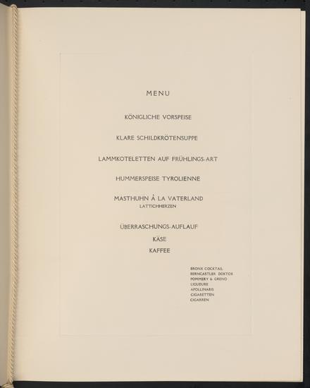 Hamburg-Amerika Linie. "Amerika." Ritz's Carlton Restaurant.