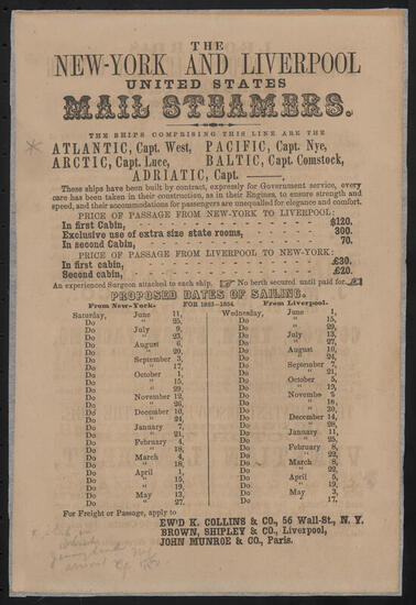 Sam'l Thompson & Nephew's Black Star Line of Liverpool Packets and the National Line of Liverpool & Queenstown Steamers