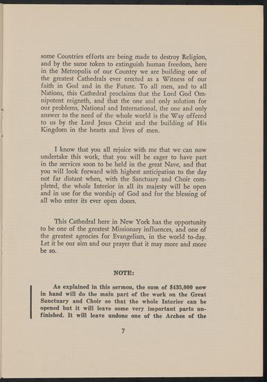 A Call for the Completion of the Sanctuary and Choir and the Opening of the great Interior of the Cathedral of St. John the Divine