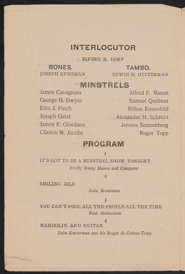 First Real Minstrel Show given by the Senior Class of the De Witt Clinton High School