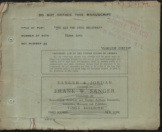 "The Man Who Owns Broadway" - Sylvia Bridwell