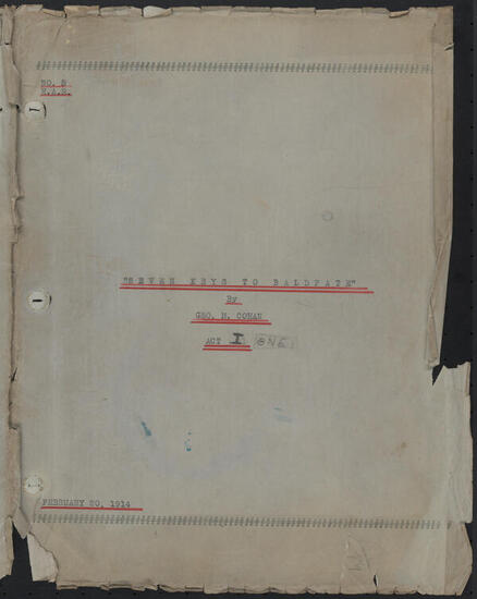 "Seven Keys to Baldpate" - A Mystery Farce in Two Acts With Prologue and Epilogue