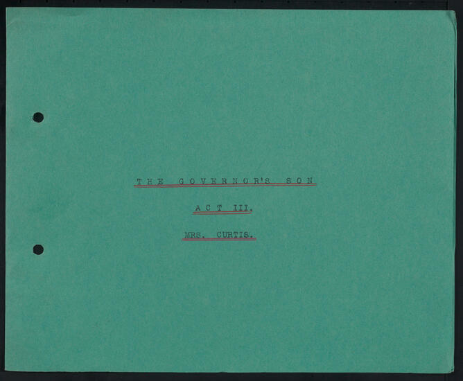 The Governor's Son. Mrs. Benjamin Curtis. Act I.