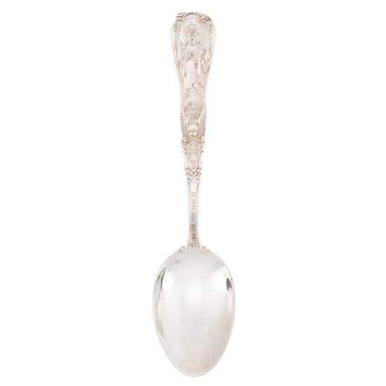 Souvenir spoon with images of Statue of Liberty and seal of the City of New York on handle obverse above plain egg-shaped bowl. Inscription: On handle obverse in raised lettering: NEW YORK. Mark: Marked on handle reverse: TIFFANY & CO. STERLING.