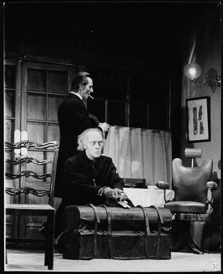 [John Wood in the title role and Nicholas Selby as James Larrabee in "Sherlock Holmes".]