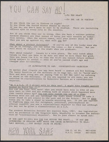You Can Say "No!" to the Draft, to the War in Vietnam