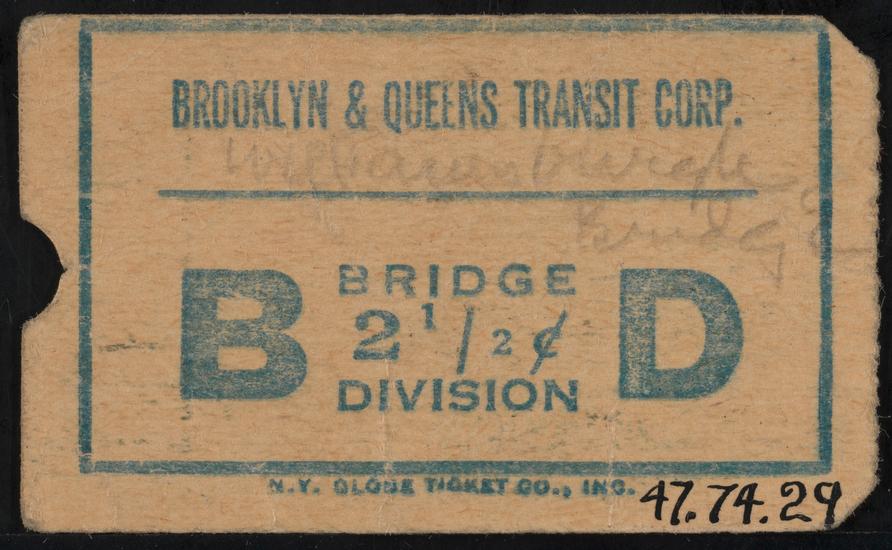 New Williamsburg & Flatbush Railroad Co. Passenger Ticket.