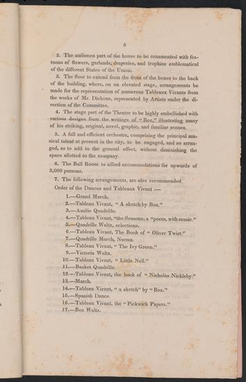 [Seating arrangement for the complimentary dinner to Charles Dickens given by the Press of the United States on April 18, 1868.]