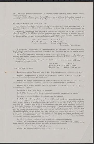 The Ball in Honor of the Prince of Wales [Notice of appointment as member of the General Committee.]
