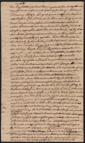 Land patent issued by Benjamin Fletcher to William Smith, June 17, 1697
