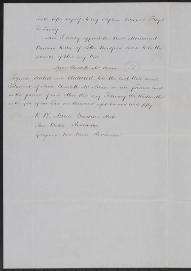 Will of Anne Charlotte McAdam, February 13, 1850