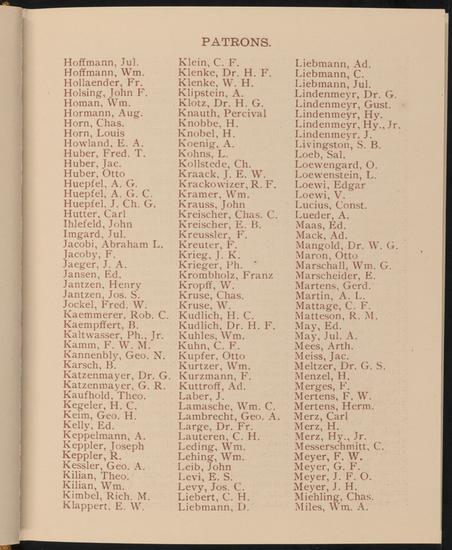 February 4, 1892. Under the auspices of the Bachelor Circle of the German Liederkranz, Jung Arion and Beethoven Bachelors.