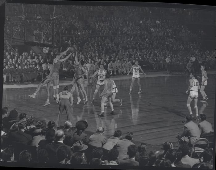 N.Y. Knickerbockers - Dick McGuire [Basketball players warming up before a game.]