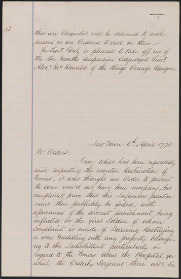 Order book of Oliver De Lancey, April 1-6, 1777, copied by Edward Floyd De Lancey in 1880