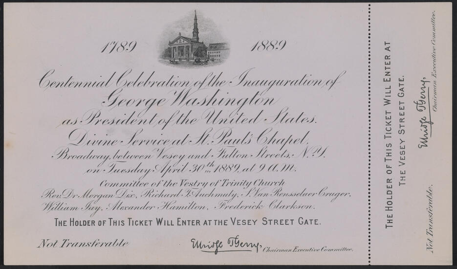 Centennial Celebration of the Inauguration of George Washington as President of the United States. Divine Service at St. Paul's Chapel